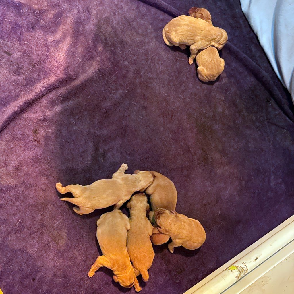 We snap complete litter photos immediately after birth and more group photos in the weeks thereafter. Please check back for more litter photos.
